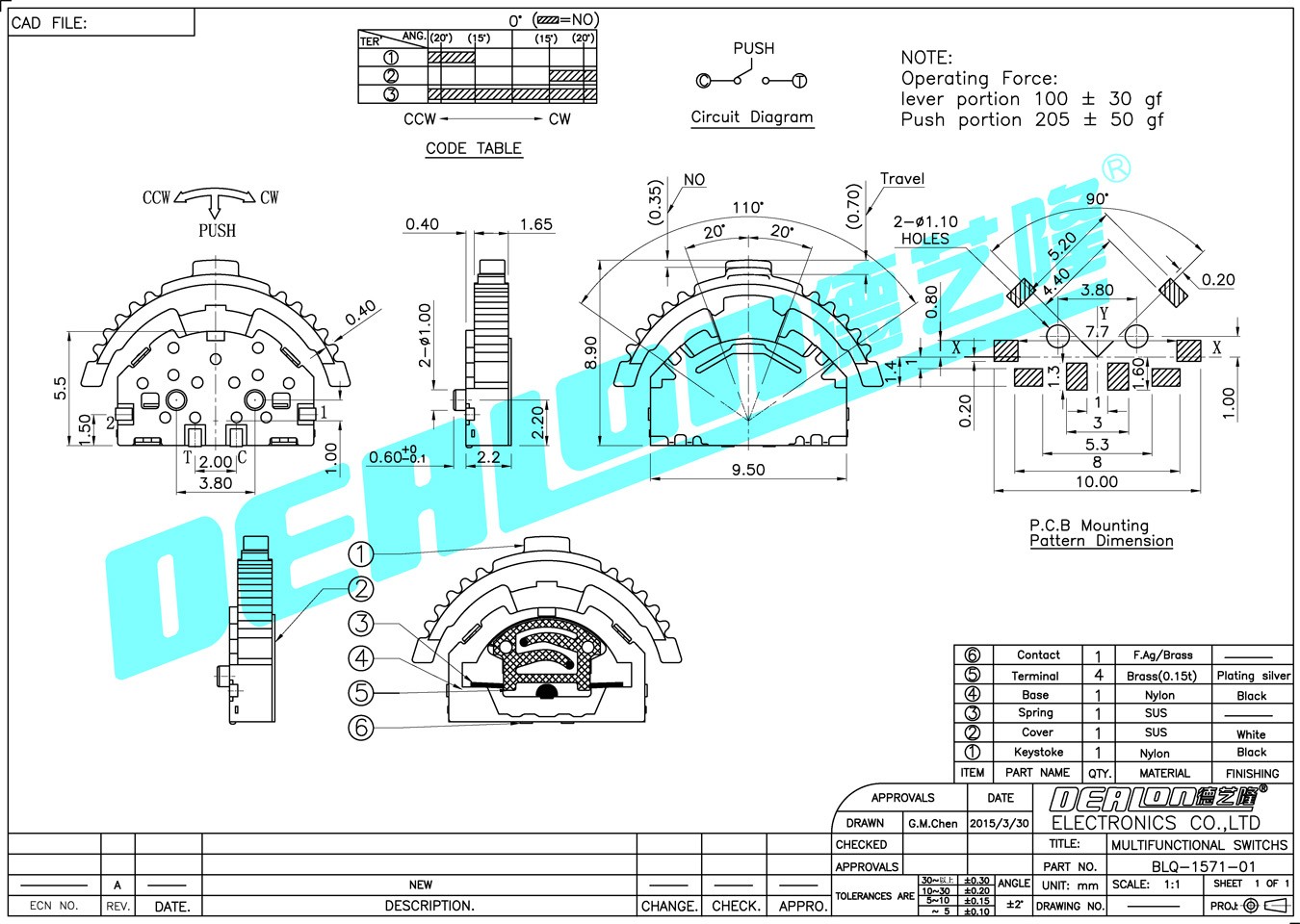 4-direction-20°-0°+20° Center push0.7mm±0.1mm